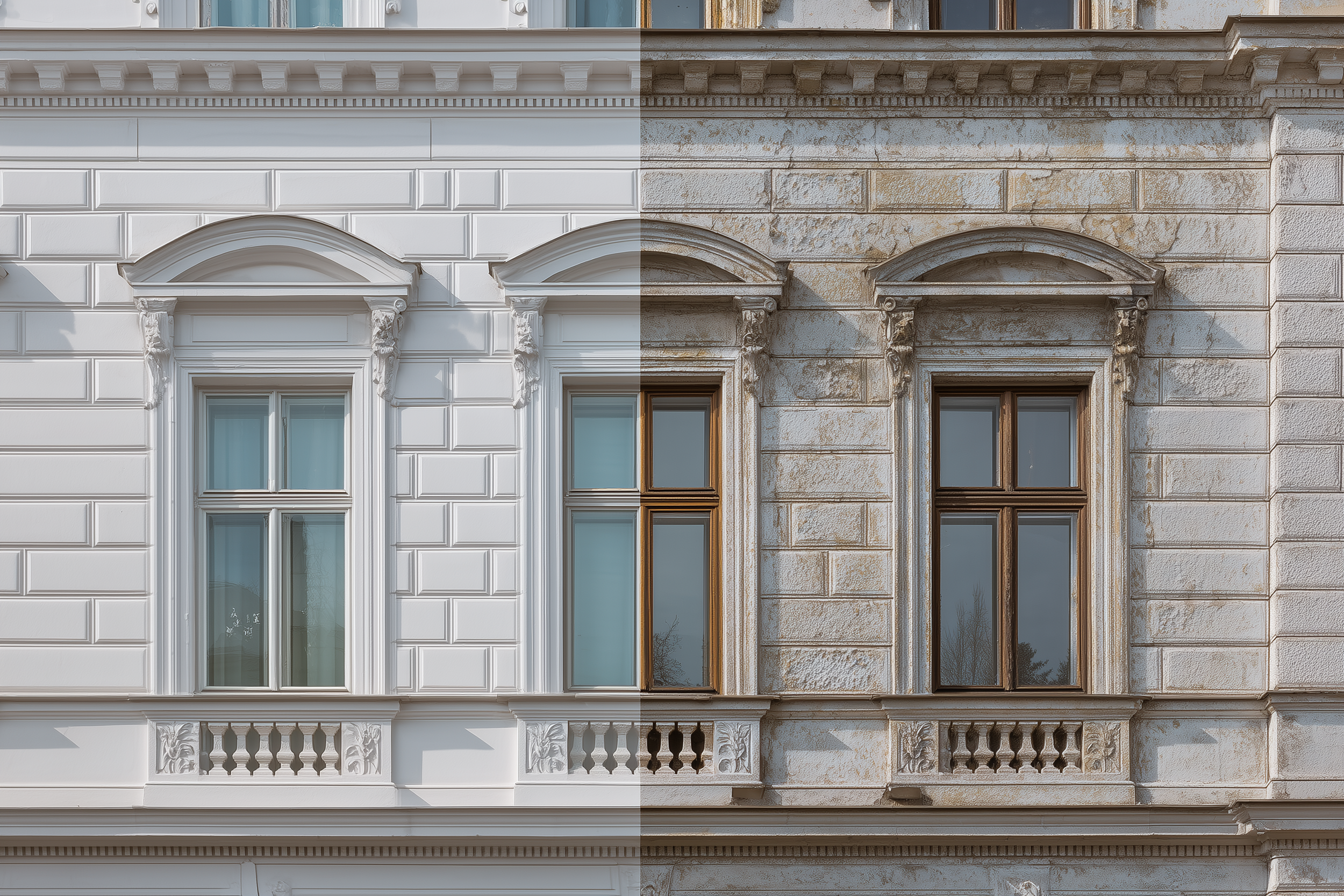 Fassadenreinigung und Schutzbeschichtungen: Erhalt der Bausubstanz und Verlängerung der Lebensdauer durch professionelle Reinigung und Schutzanstriche.